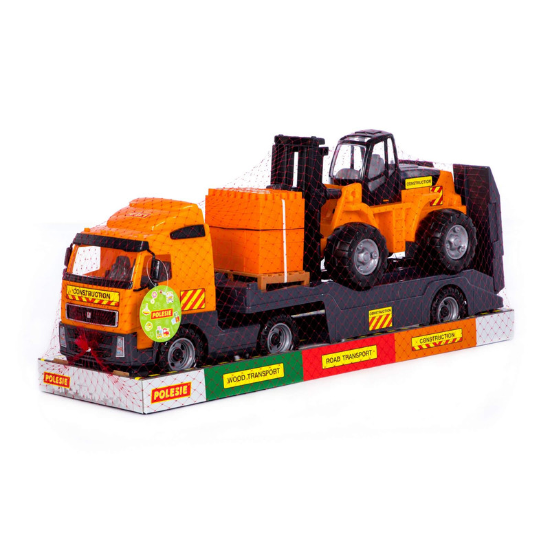 تریلر و لیفتراک مدل پالیسی در واقع دو اسباب بازی در قالب یک پکیج است. دقت بالای ساخت و کیفیت مواد بکار رفته در تولید آن در کنار جزئیات بینظیر متناسب با مقیاس واقعی آنرا بیشتر به یک ماکت فوق العاده و بزرگ شبیه کرده تا یک اسباب بازی بچه گانه! عشق ماشین سنگینها بیایند. یک لیفتراک بزرگ نیز در تراک عقب یک تریلر مخصوص حمل آن آرام گرفته تا با آن به اطراف حرکت و شروع به حمل بار کنید. مکانیزم چرخش تراک عقب تریلر کاملا روان و واقعی ساخته شده، پس مراقب قیچی کردن عقب ماشین در پیچها و سرعت ها باشید. بازوهای لیفتراک نیز بدرستی حرکت میکنند تا لحظهای تصور یک اسباب بازی ساده را نداشته باشید.